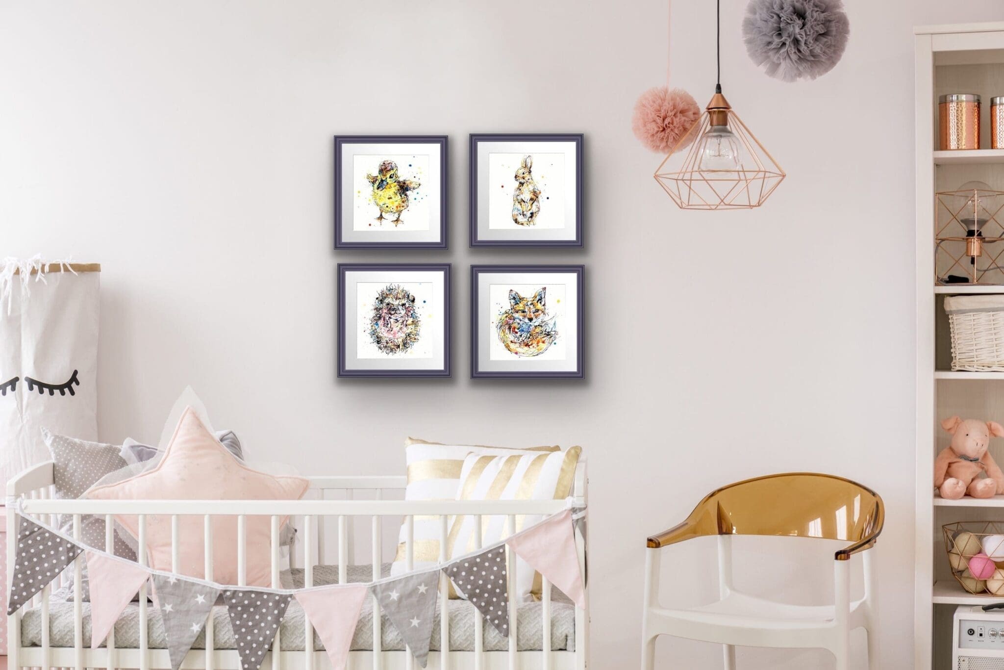View the CollectionThere are four cuddly characters in the New Arrivals collection named Sherbet, Pickles, Pumpkin and Milkshake. Kathryn picked these names with both of her children who absolutely love the new characters! These prints were inspired by the desire to create a series that would brighten up any baby’s bedroom, be a delightful gift for new parents, and make a fabulous birthday present for a child.